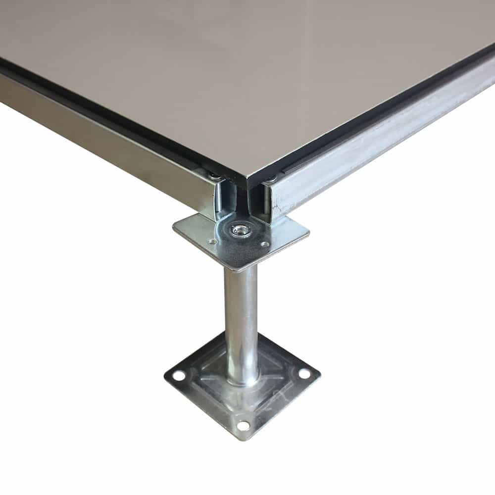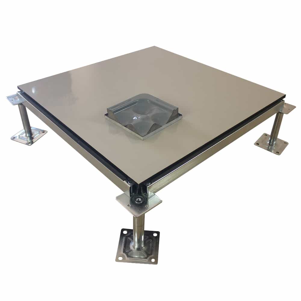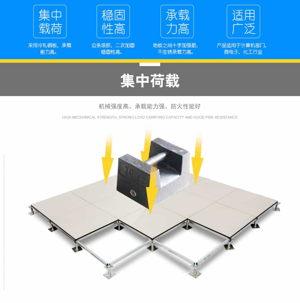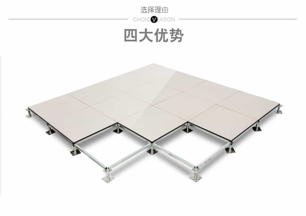 全鋼陶瓷防靜電地板采用上海寶鋼合金冷軋鋼板,經(jīng)拉伸后點(diǎn)焊成形。在瓷質(zhì)面層的生產(chǎn)過程中,均勻注入防靜電添加劑,由于面層的耐磨性,防靜電性能可以保持20年以上。而且系統(tǒng)電阻穩(wěn)定、經(jīng)信息產(chǎn)業(yè)部防靜電協(xié)會(huì)檢測,各項(xiàng)性能均達(dá)到要求。全鋼陶瓷防靜電地板系統(tǒng)有地板、橫梁、支座組成。橫梁和自身高度可調(diào)的支座用螺釘連結(jié)成穩(wěn)固的下部支承系統(tǒng),地板鑲嵌入橫梁圍成的方格內(nèi)。