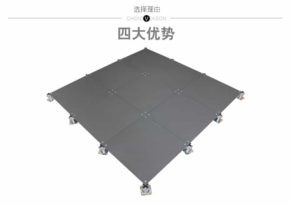 該地板可以選配帶出線口的配置,可根據(jù)要求任意添加線槽布線更具靈活性。此地板可以將強(qiáng)、弱電分開隔離,同時(shí)也便于檢修。安裝采用無梁角鎖,具有牢靠、穩(wěn)定、調(diào)平、簡便之特點(diǎn)。